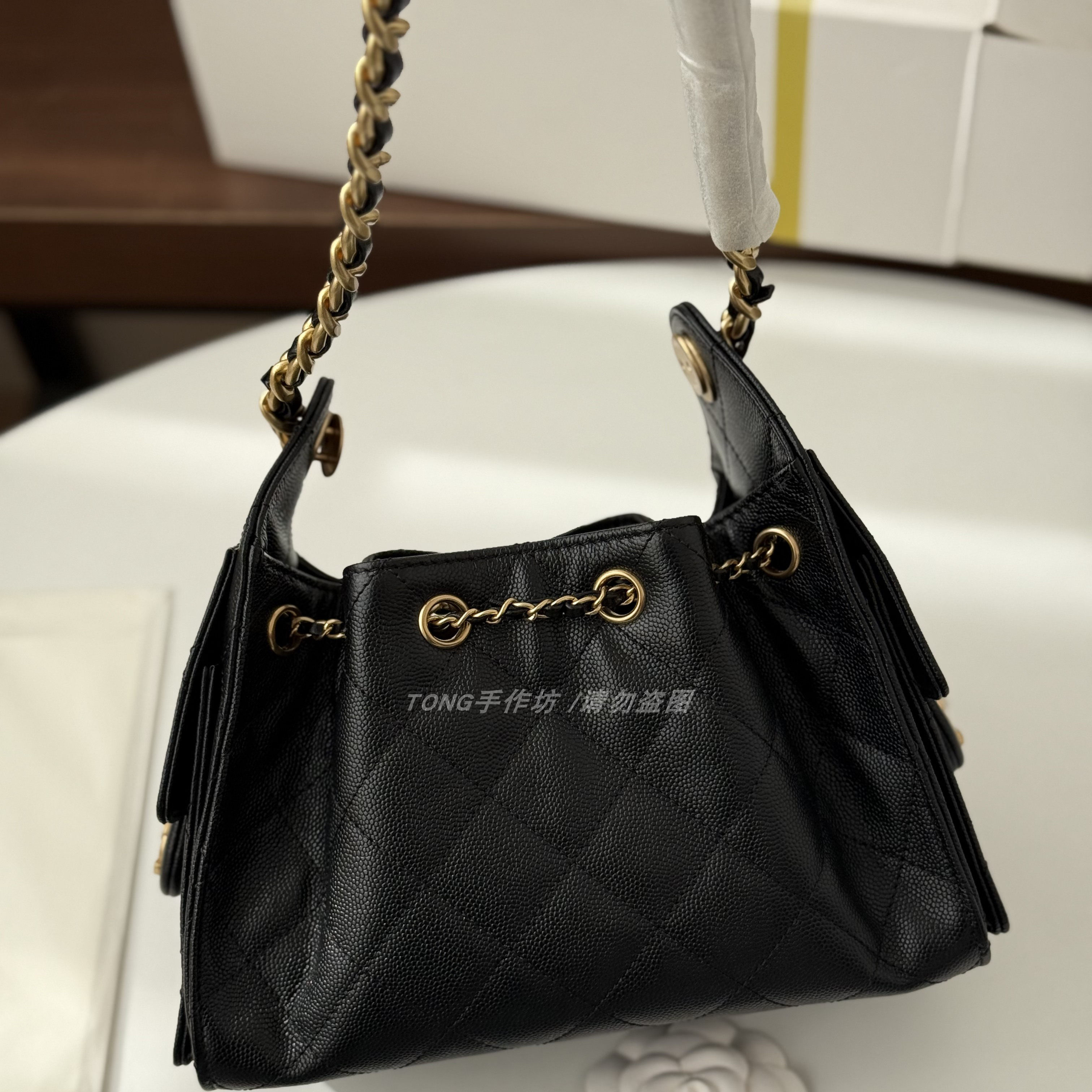 Tong Handmade Workshop 26C Mini 25Bag Black Cowhide Leather, Lychee Pattern, Not for Quality Control Professionals, Please Do Not Disturb!