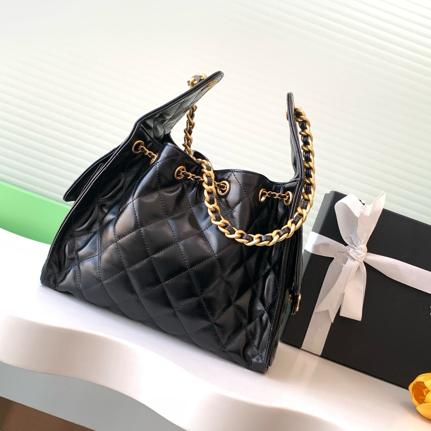 25Bag Small Chanel-Style Hobo Bag, Small Hippie Bag for Women, Genuine Leather Quilted Single-Shoulder Chain Drawstring Bucket Bag, Underarm Bag