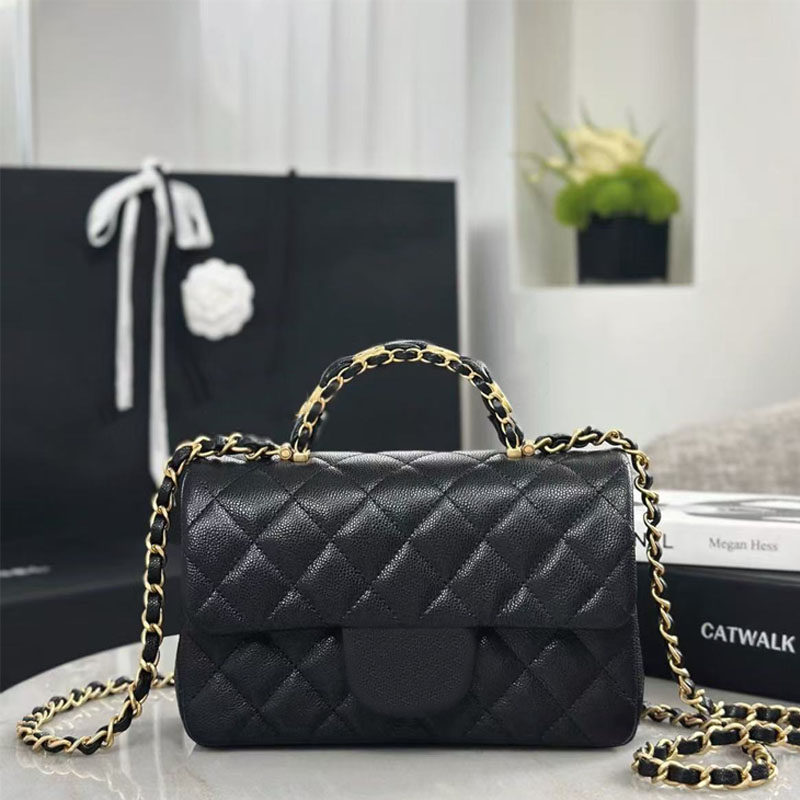 25B New Original Caviar Handle Cflap Large Mini Bag Black Gold Retro Hollow Handbag Chain Women's Bag