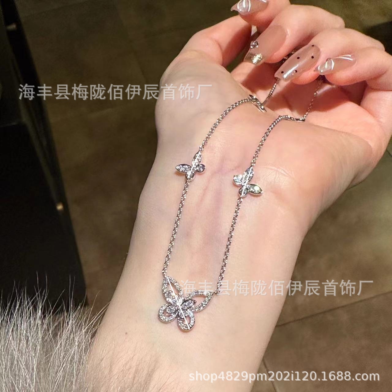 Sparkling Diamond Butterfly Necklace for Women, Light Luxury Niche Design, 2024 New Popular Trendy High-End Clavicle Chain Necklace