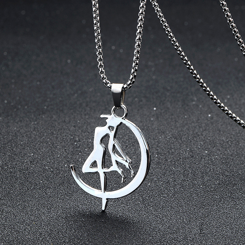 Fashion Animation Peripheral Beautiful Girl Warrior Necklace Women's Light Luxury High-end Sense Popular Internet Hip Hop Pendant Cold Style Jewelry