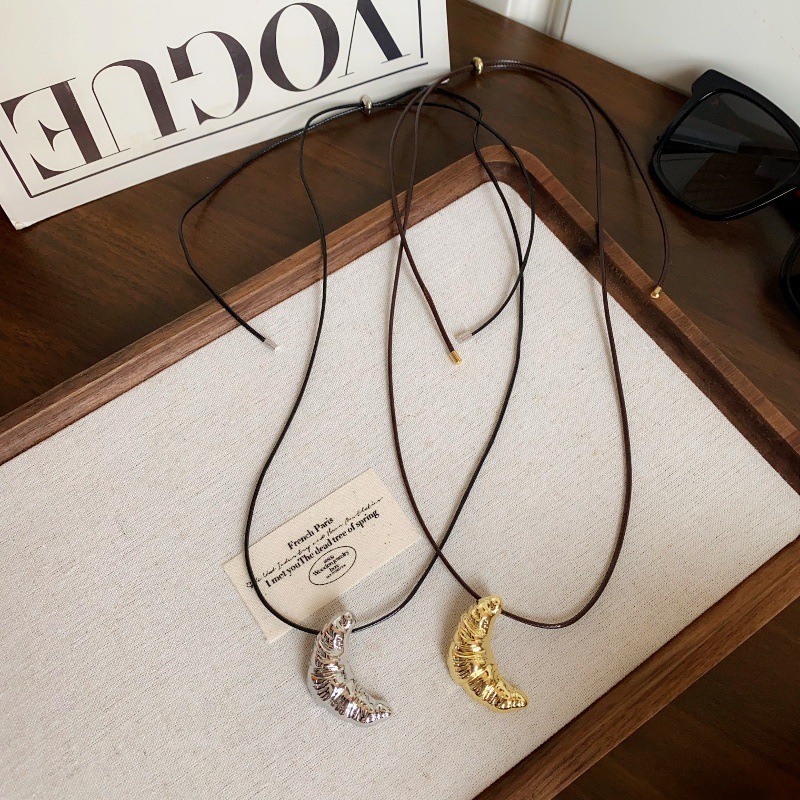 Korean-style Cattle Bag Black Leather Cord Necklace Women's 2024 New All-match Elegant Long Woolen Chain Clavicle Chain Accessories