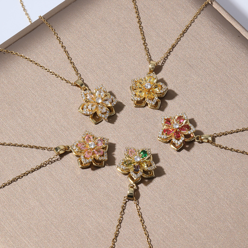 Necklace Female Cross-border Small Online Red Rotating Bauhinia 360-degree Rotatable Zircon Flower Temperament Necklace Necklace