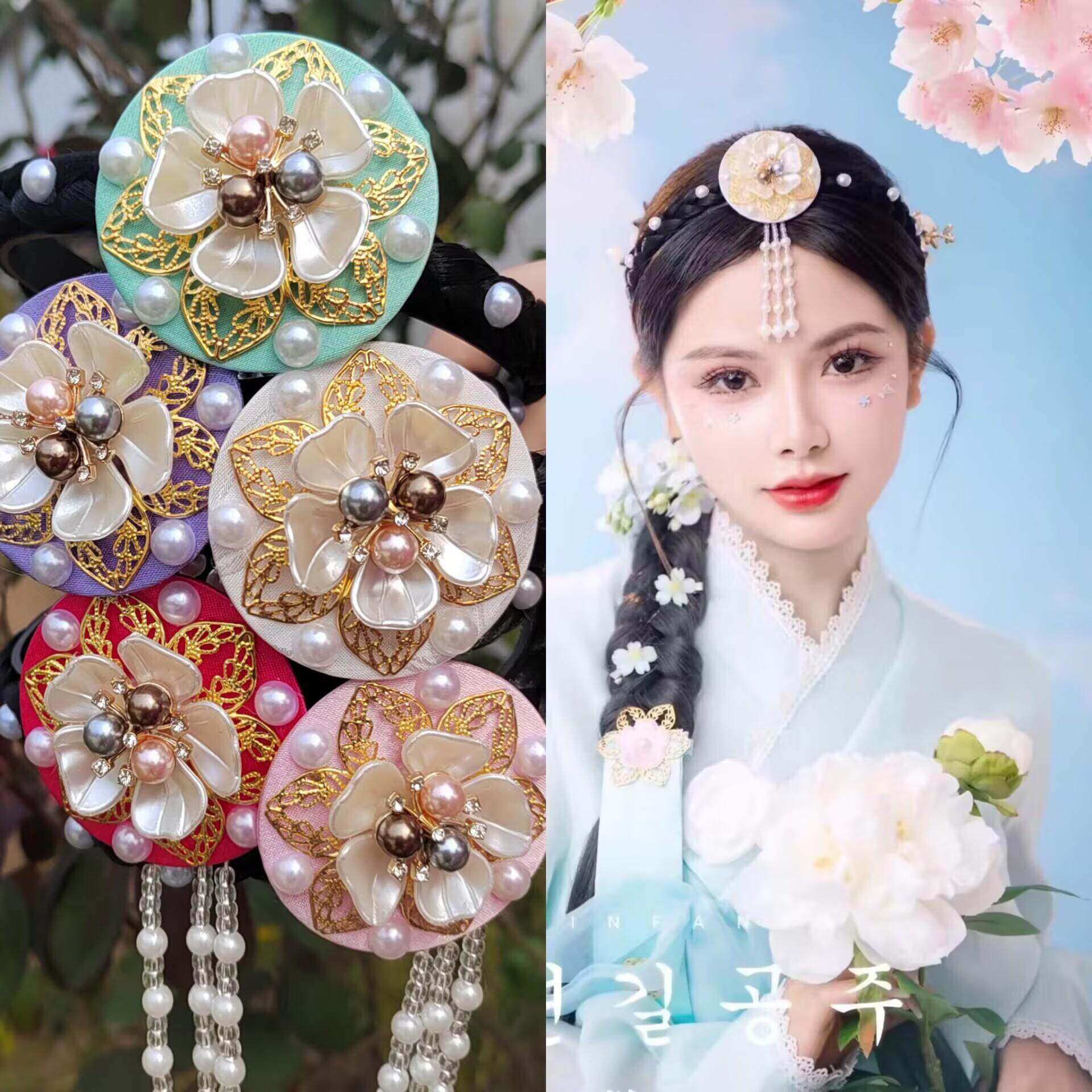 Yanji Korean-Style Hair Accessories, Traditional Cute Ethnic Korean Headwear for Hanbok Performances, Headband Accessories for Photography