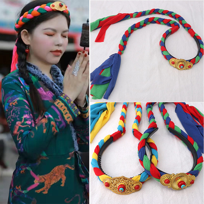 Tibetan Headwear for Women, Tibetan-Style Jewelry, Hair Braids, Tibetan Women's Braided Fake Hair, Ethnic Hairbands, Imitation Gold