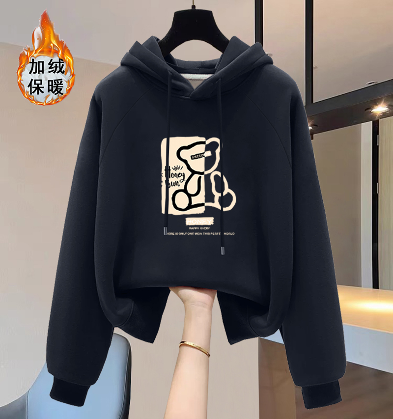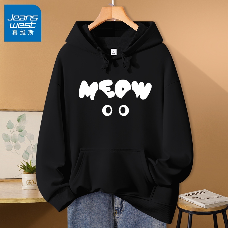 Jeanswest Black Hooded Sweatshirt for Women 2025 New Spring and Autumn Loose Fleece Casual Versatile Hoodie Jacket X