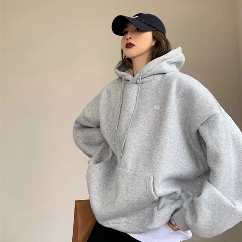 2023 New arrival Fall and winter Fleece-lined Thick oversize Hooded Sweatshirt Women's Spring & Fall Thin Loose Couple Outwear Easiest for match