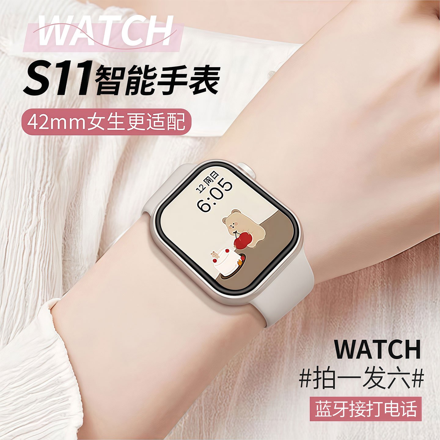Huaqiangbei S11 Smart Watch 42mm for Women and Men, Sports Bracelet Suitable for Android and Apple Phones