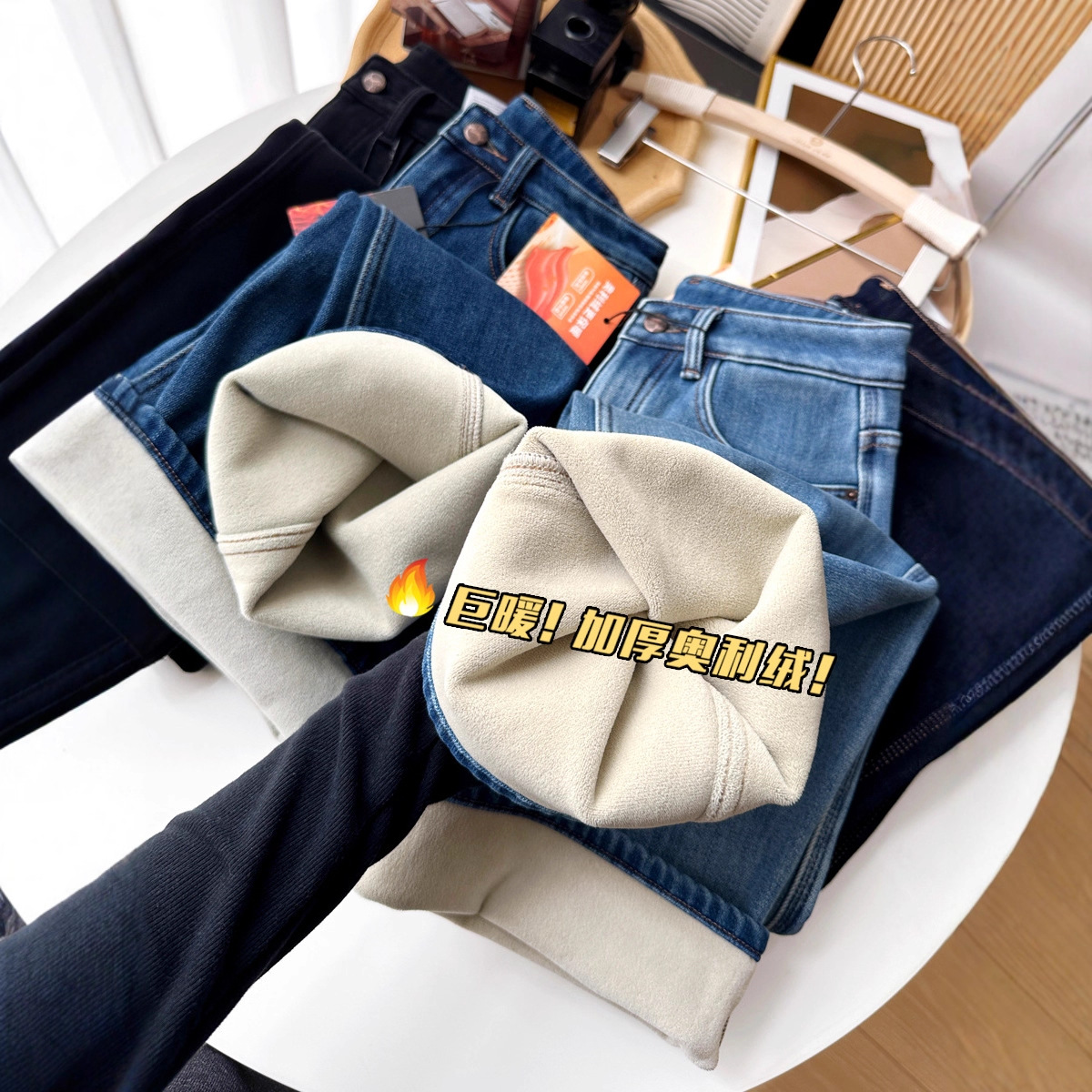 Spring Is Never Too Late, Ju Is Warm! Autumn and Winter Thickeneded Velvet Straight Jeans for Women, Ollie Velvet Warm and Slimming Look Narrow Wide-Leg Pants