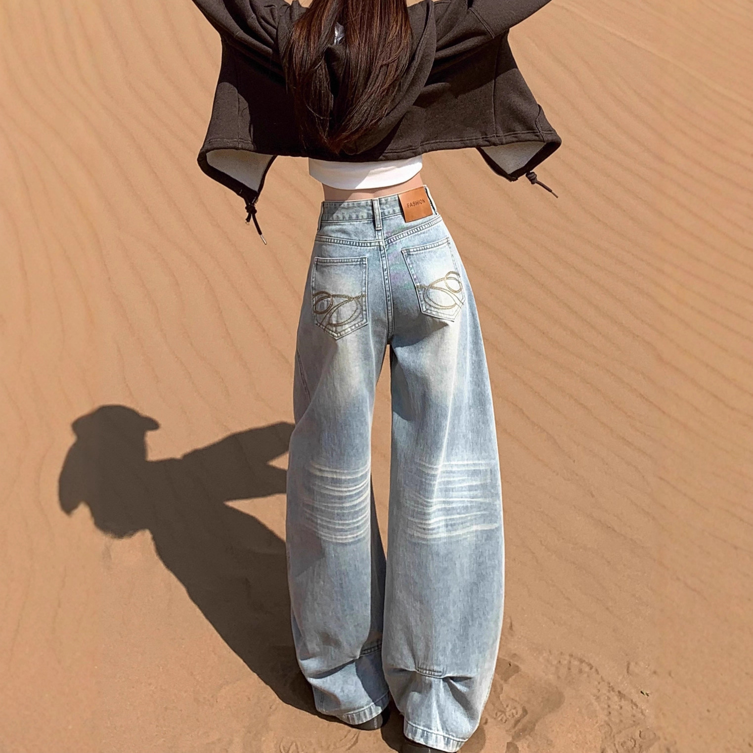 Cross-Border European and American Export Amazon Wish Aliexpress 2025 Autum New Casual Wide-Leg High-Waist Jeans for Women