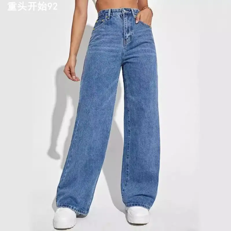Cross-Border Trade Plus-Size Jeans for Women, High-Waisted, Loose, Versatile, Straight-Leg, Wide-Leg Jeans for Commuting