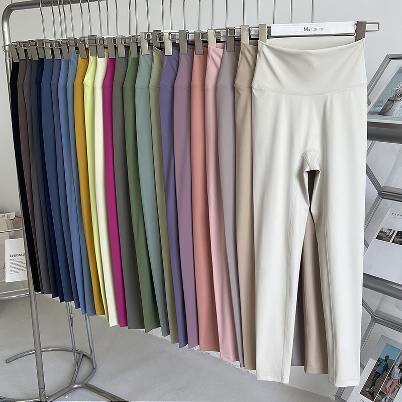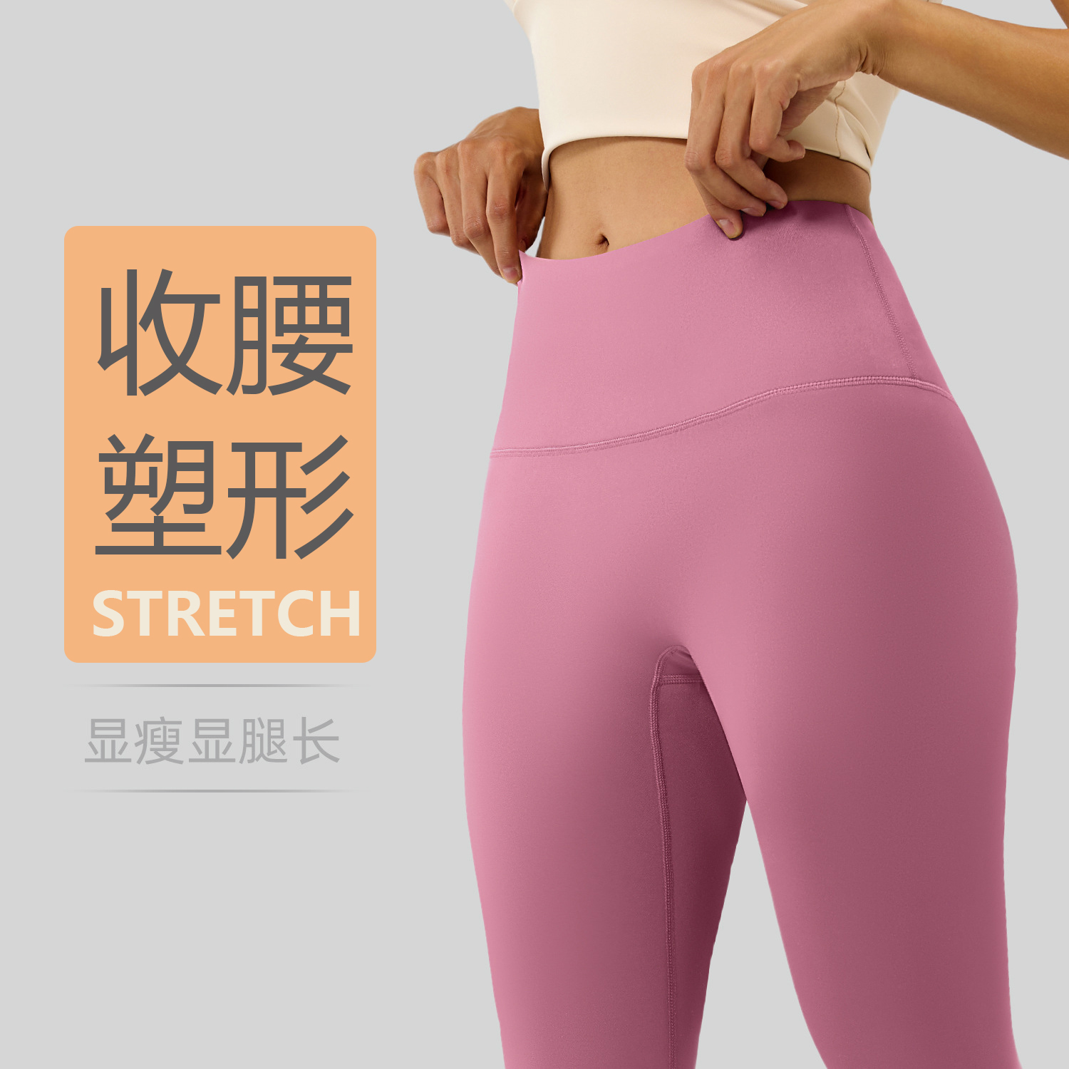 Lulu-Style Leggings, Naked-Feel Yoga Pants, High-Waisted, Butt-Lifting, Stretchy, Tight-Fitting Sports Base Layer, Hiking Nine-Point Pants