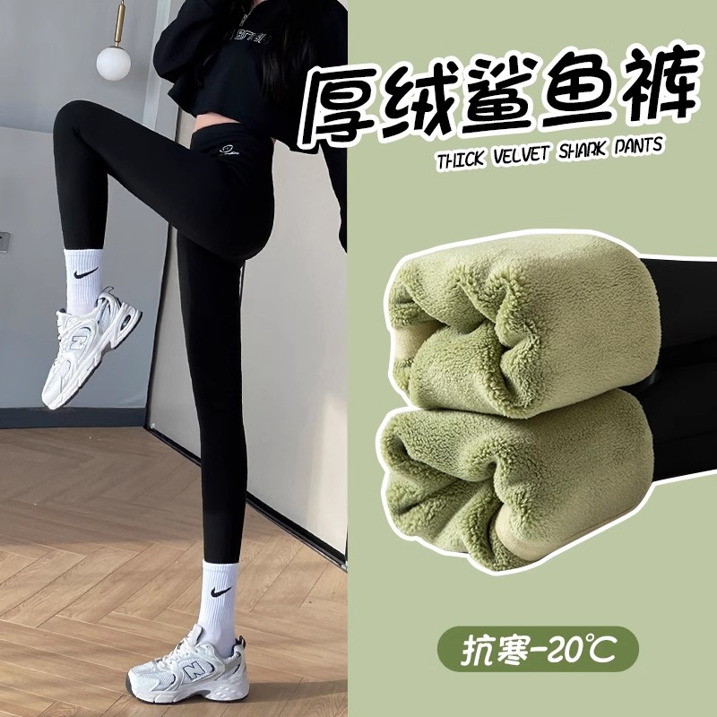 Shark Pants for Women, New 2025 Autumn and Winter Fleece-Lined, Thickened, Tight-Fitting, Warm Cotton Leggings for Yoga in Winter