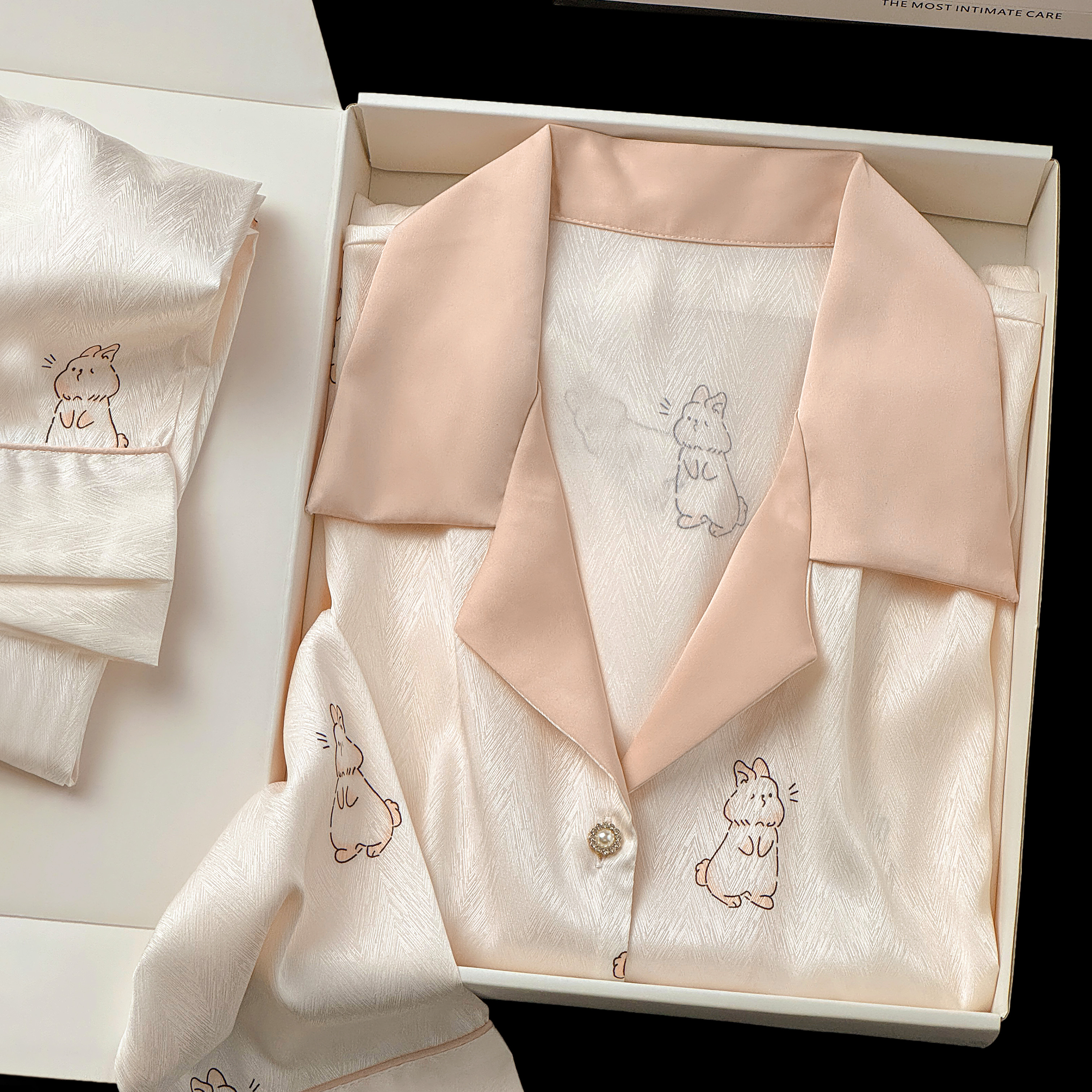 Coy Kiss Silk Rabbit Pajamas for Women, Summer Short-Sleeved Three-Piece Set, Pure and Seductive Style, Gift Box Set, Loungewear for Best Friends