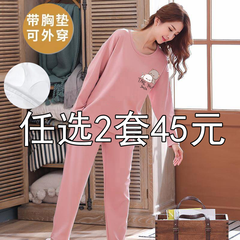 Longsha Pajamas with Chest Pad Women's Spring and Autumn pure cotton Long sleeves pants Han Fan Home Clothes Two-piece set 2025 New arrival