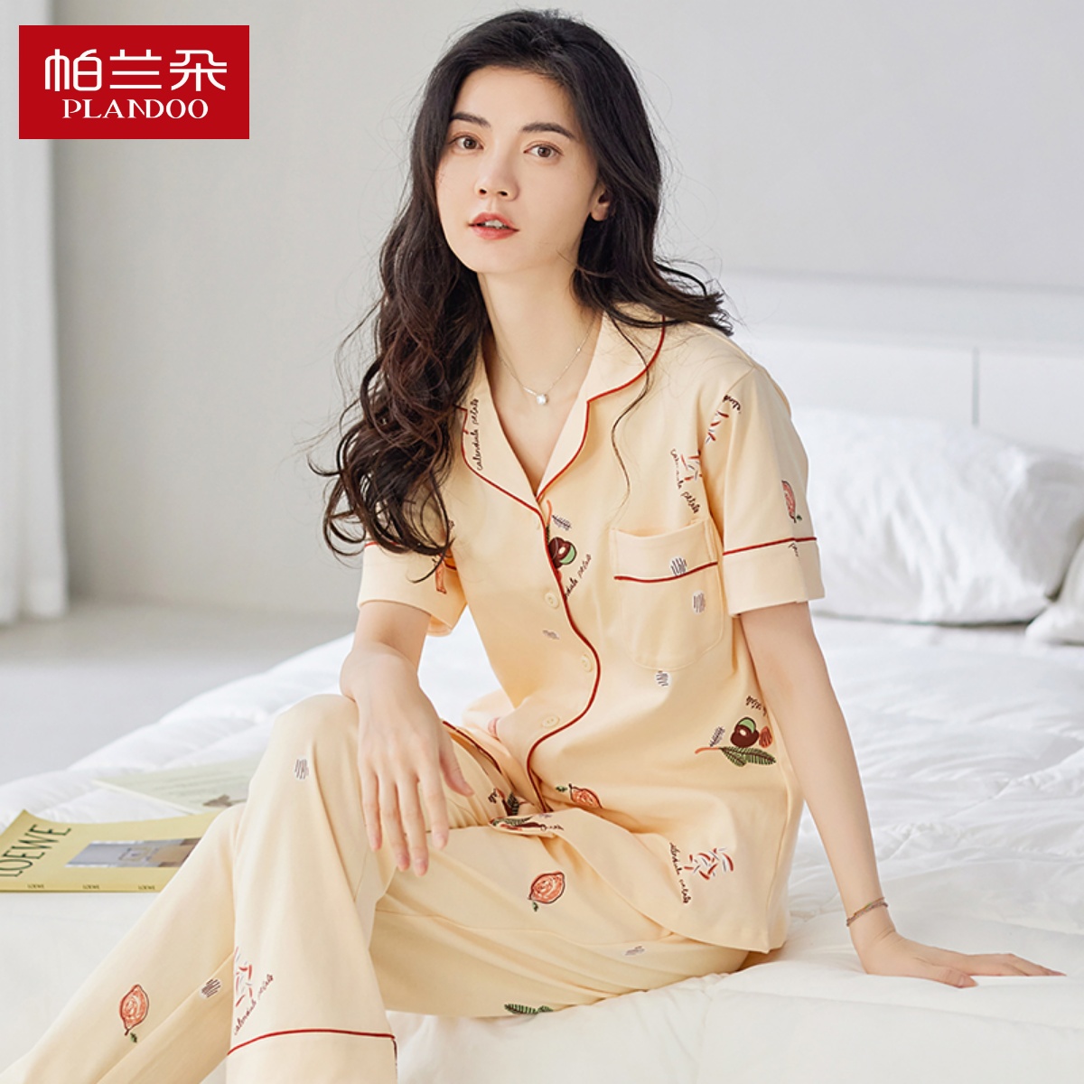 Palando Pajamas for Women, Summer Thin Pure Cotton Short-Sleeved Long Pants, Spring and Autumn Cardigan, Sweet Home Wear, All-Cotton Set