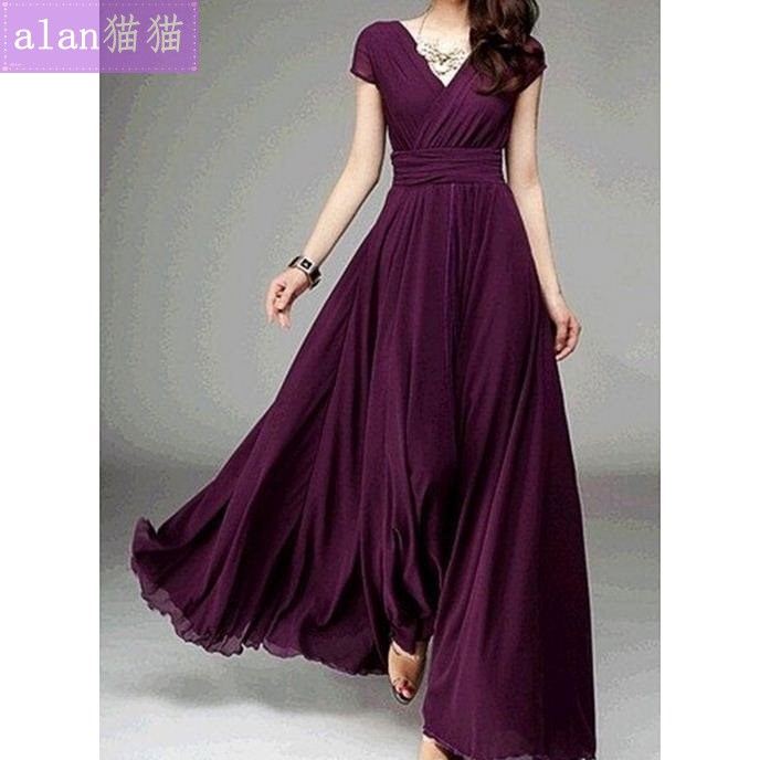 Summer Women Dresses Ladies Skirt Raglan Sleeve Pure Color Asymmetrical V-Neck Dress