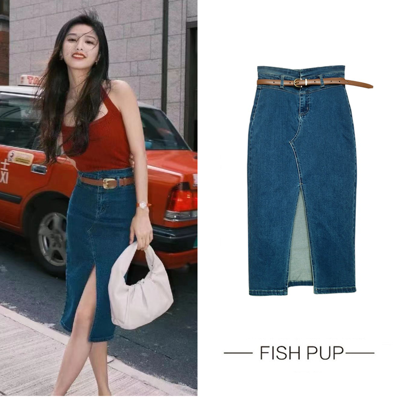 Gao Wenjun Style High-Waisted Denim Skirt Set for Women, 2025 Summer New Model, Petite Bodycon Skirt