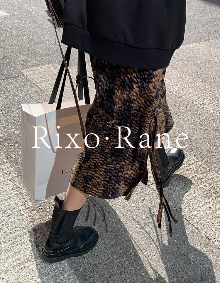 France Rixo Rane ⭐ High-Waisted Slit Skirt for Women, Retro Versatile Pleated Mid-Length A-Line Skirt with Large Hem