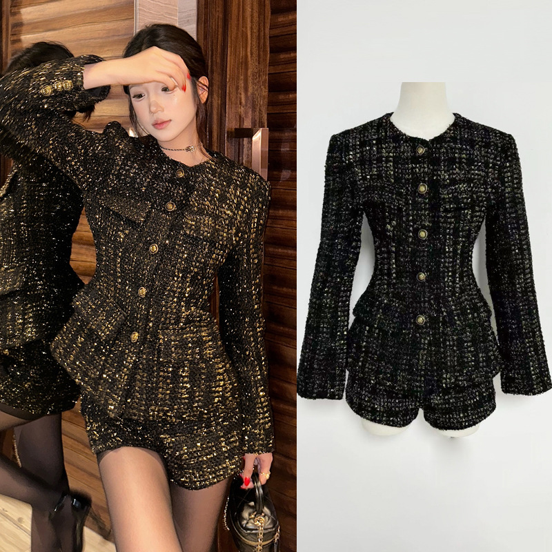 Human Rich Flower Fragrant Style Coat Early Autumn suit Women's High-end Temperament White Waist Shorts Two-piece Set
