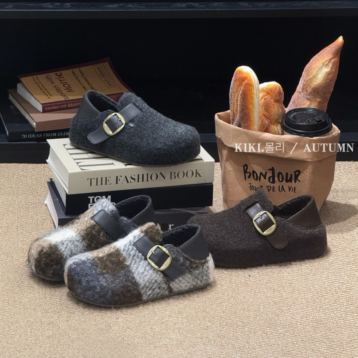 Mollykiki Thick-Soled Two-Wear Fleece-Lined Birkenstock Shoes for Women 2025 Winter New Korean Style Casual Versatile Non-Slip Shoes