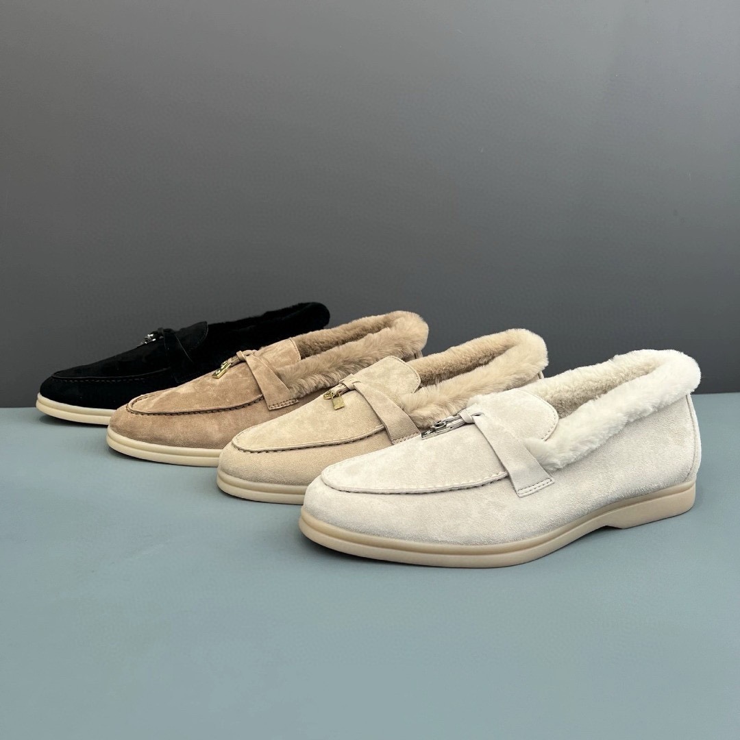 [Channel Top Version] Women's Genuine Leather Lp Loafers Fur Shoes Satin Rabbit Fur Non-Beaver Fur