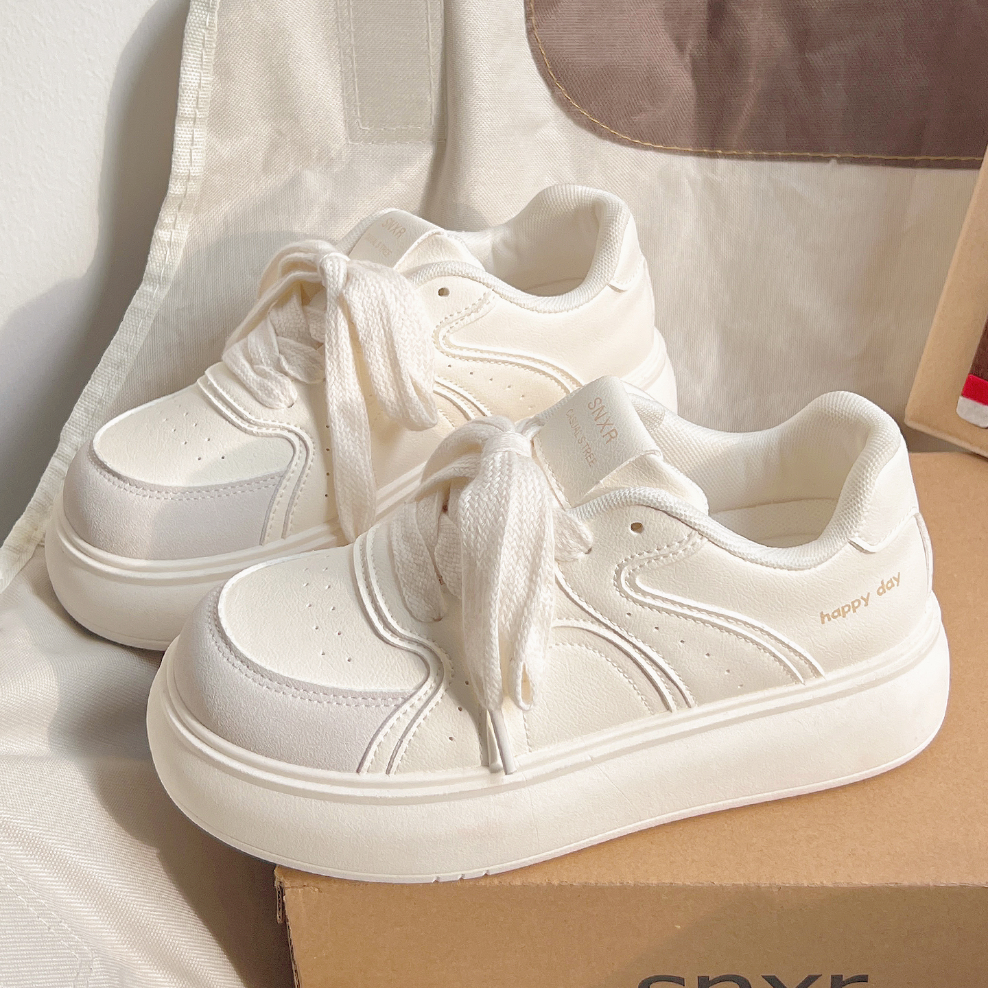 De Xun Thick-Soled Sneakers for Women, Cute and Quirky, 2025 Autumn New Style, Student Chic Niche Design, Versatile Sports White Shoes