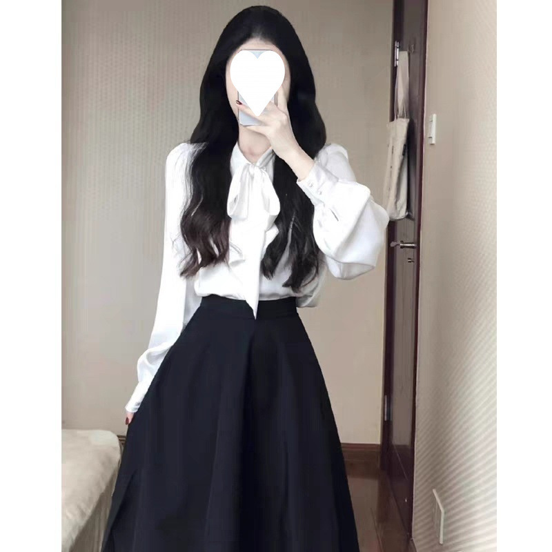 White Water Women's Qiajin College Style Fake Two-Piece Knitted Shirt A- Shape Skirt Women's Autumn and Winter Korean Style Temperament suit