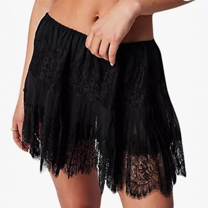 Ballet Style Basic Solid Color Irregular Hem High Waist Lace Skirt Sweet Girl Slimming