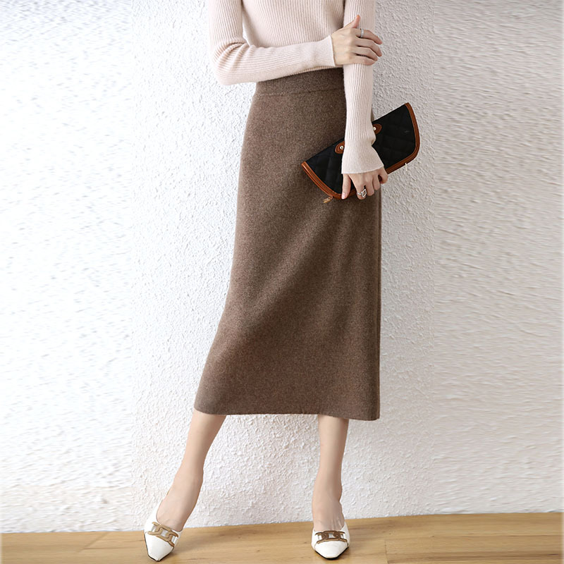 Autumn and Winter New Women's Wool Knit Slimming Fashion Classic Versatile Pencil Skirt Solid Color Half Skirt