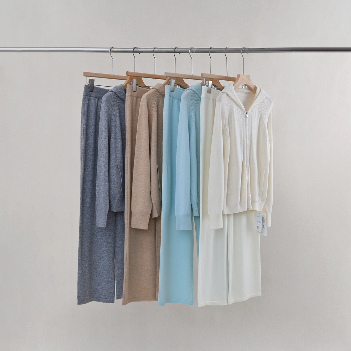 2025 Spring Fashion Casual Suit Women's Lp Pure Wool Casual Hooded Knitted Cardigan Jacket Loose Wide Leg Pants