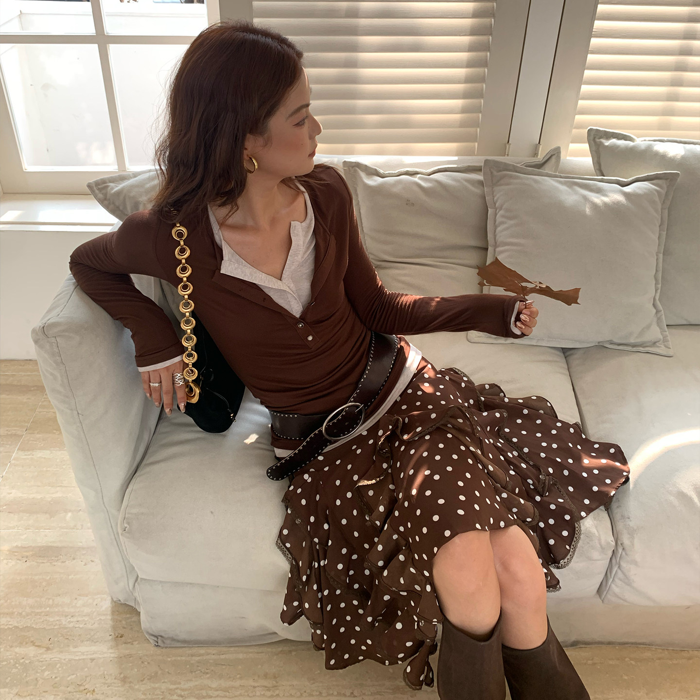 Mar Autumn/Winter Retro Polka Dot Design Niche Irregular High-Waisted Slimming A-Line Skirt for Women
