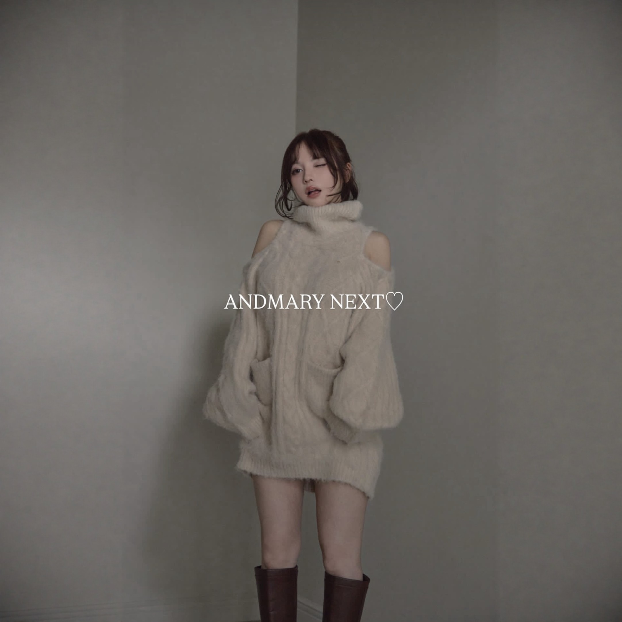 Unique and Super Popular Am Vintage Style High-Neck Off-Shoulder Lazy Japanese Style Plush Twist Sweater Dress