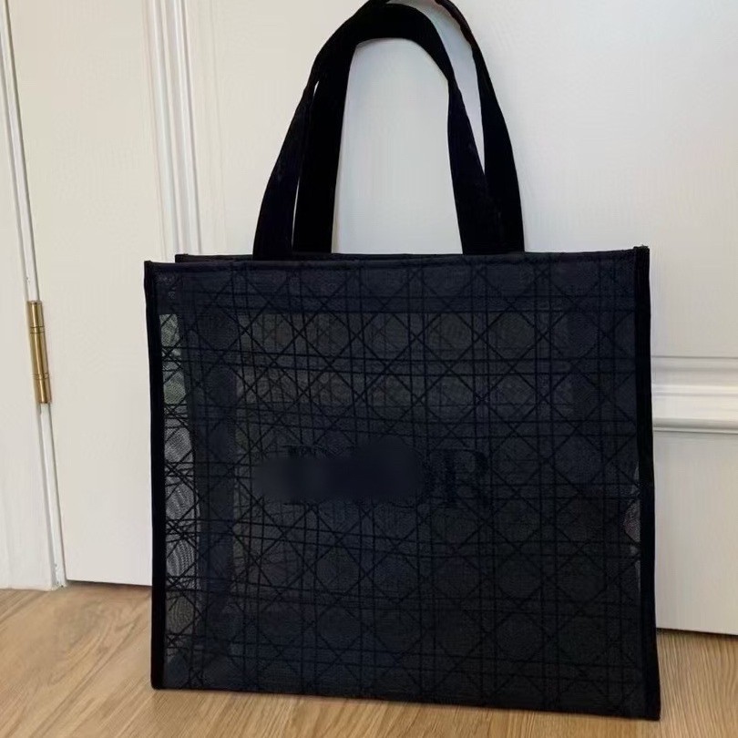D's Cabinet Women's Lace Mesh Tote Bag Shoulder Bag Soft Leather Open Urban Simple Style Large Capacity Tote Bag