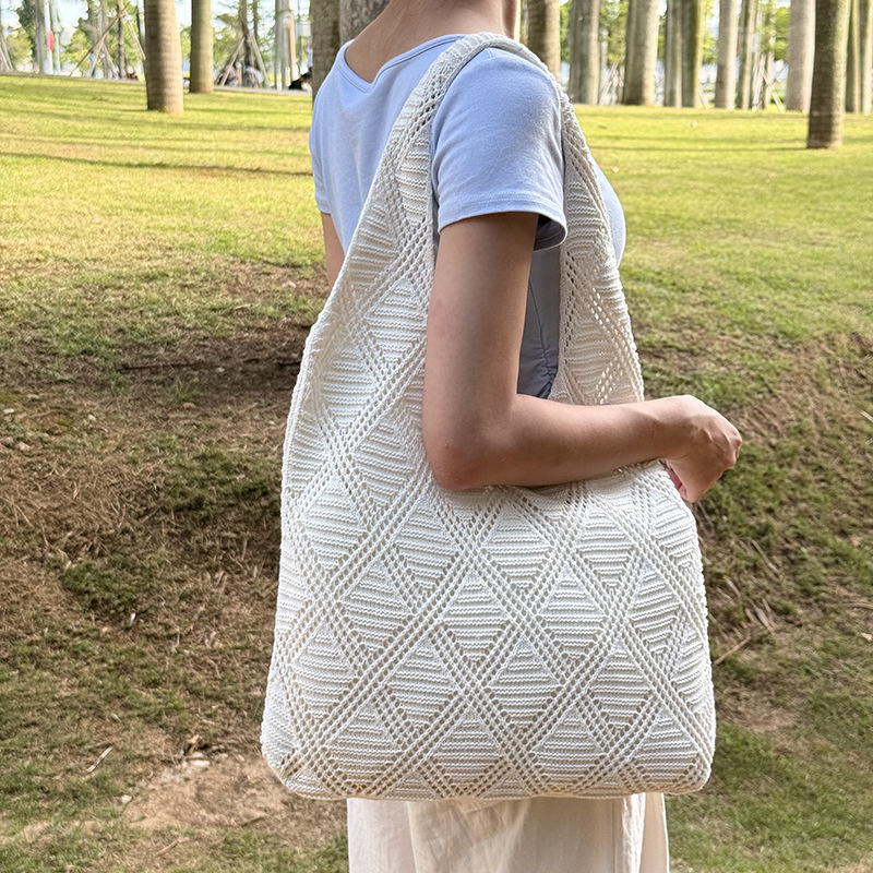 Casual Vacation Knitted Bag, Versatile Large-Capacity Commuter Shoulder Bag, Hollow Woven Bag, Women's Vacation Style Tote