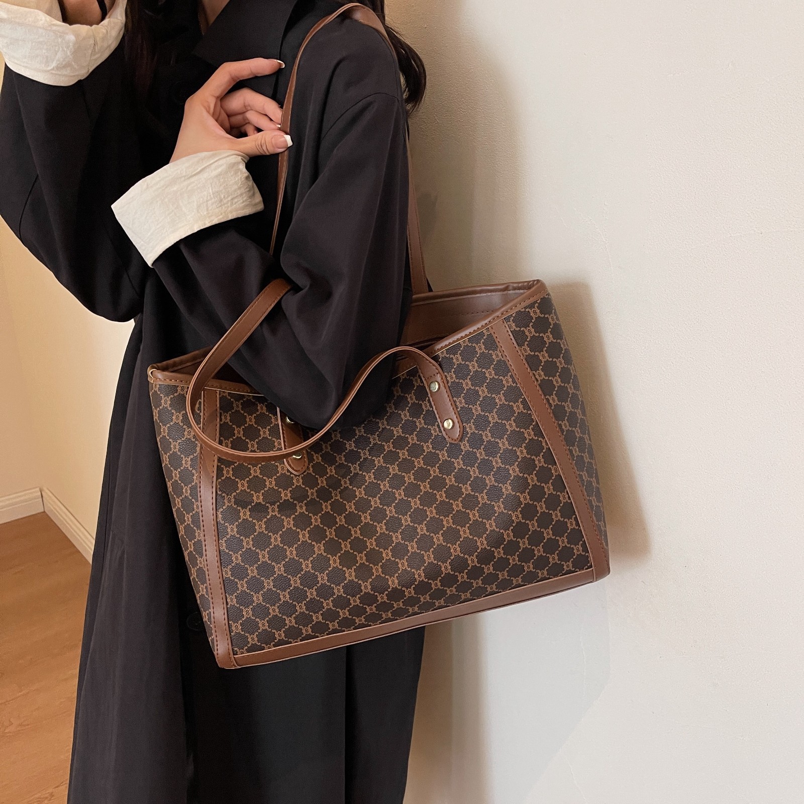 High-end 2024 Large Capacity Retro Bag Women's Autumn and Winter New Leisure Commuter Shoulder Bag European and American Women's Tote Bag