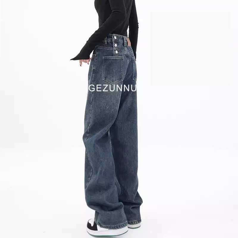 【Heavy-Duty Washing】American Retro Wide-Leg Jeans for Women, Slimming, 2025 New Style, Loose Straight-Leg Floor-Length Pants