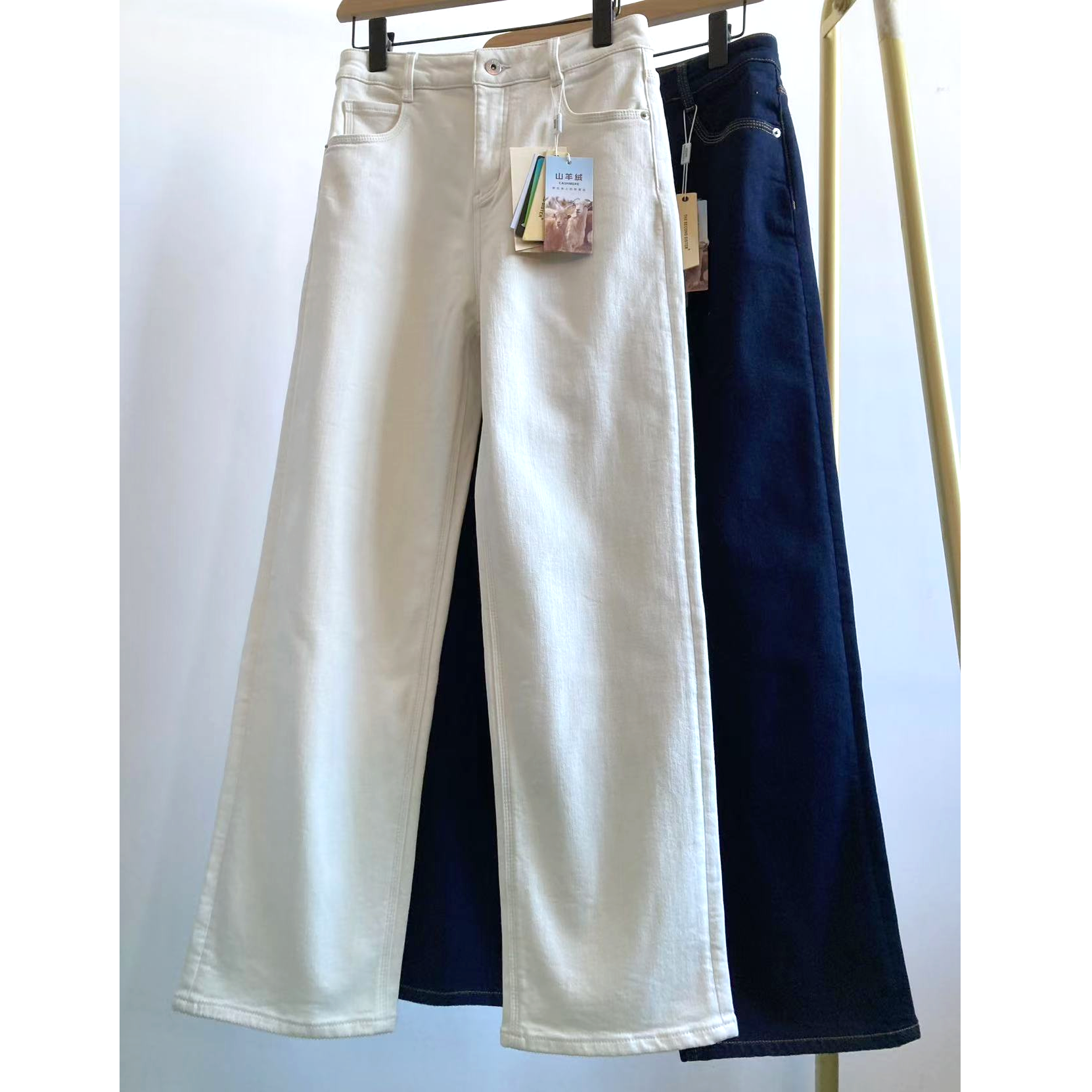 The Second Sister Understands the High-End Fashion of the Second Sister! Cashmere Warm Fleece-Lined Loose Straight-Leg Jeans for Women