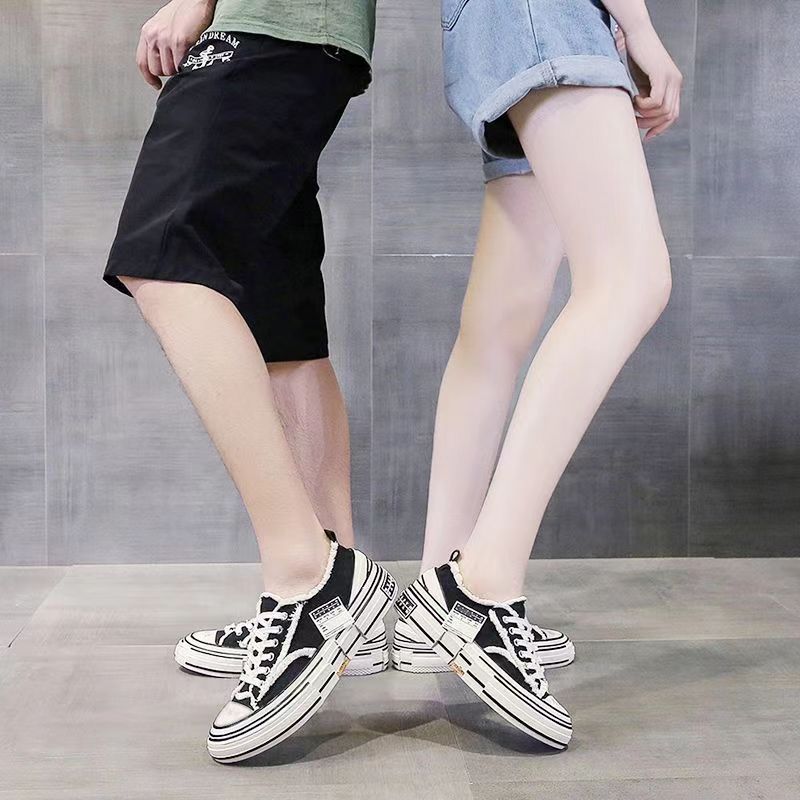 Celebrity-Inspired Couple's Thick-Soled Casual Shoes, Distressed Shoes for Women and Men, Dad Shoes with Cork Vulcanization, Height-Increasing Trendy Canvas Shoes