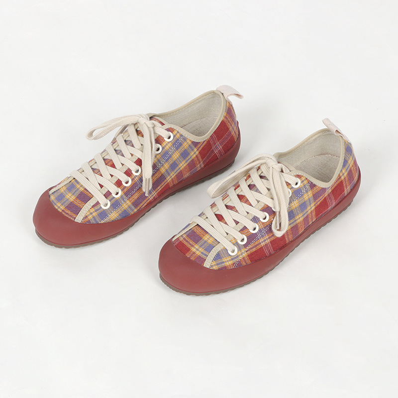 [Plaid] Hemp Vulcanized Shoes Lightweight Low-top Trendy Shoes Plaid Four Seasons Women's Single Shoes Fashionable All-match Flat Bottom