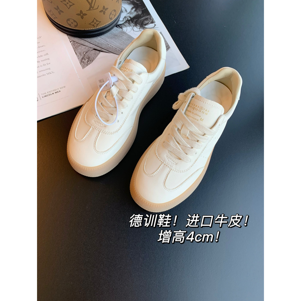 Deutsch Training Shoes! Cowhide! Increase Height by 4cm~ Casual Sports Sneakers Thick-Soled Versatile White Shoes for Women Spring G042201