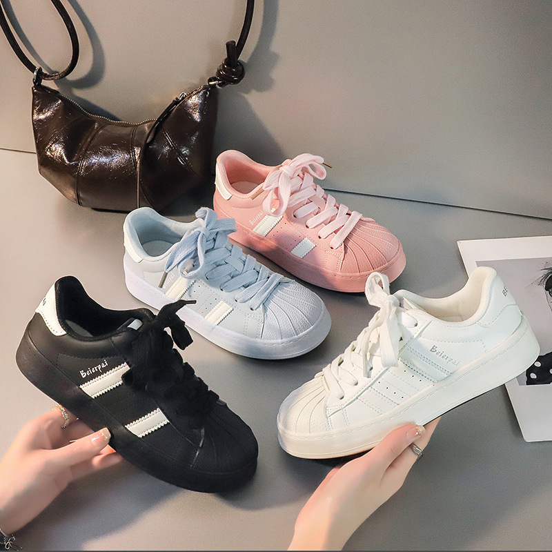 Be-6772 Vulcanized Shell Toe Sneakers Women's 2025 Spring Easiest for Match Low-Top Thick-Soled Dopamine Casual White Shoes