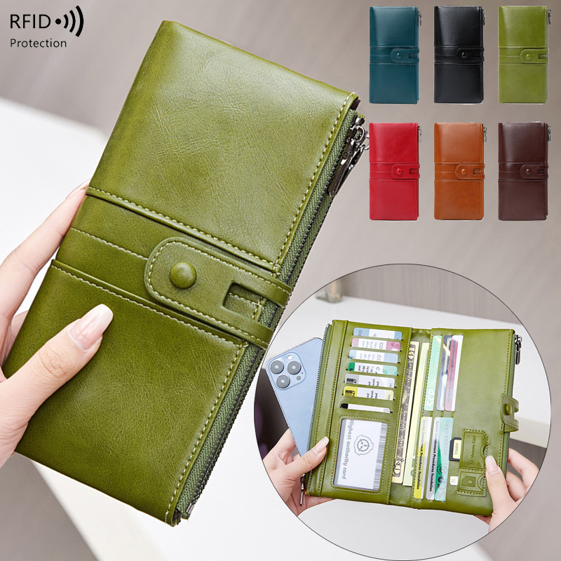 Cross-border RFID anti-theft brush women's wallet oil wax leather double zipper long wallet European and American new retro clutch