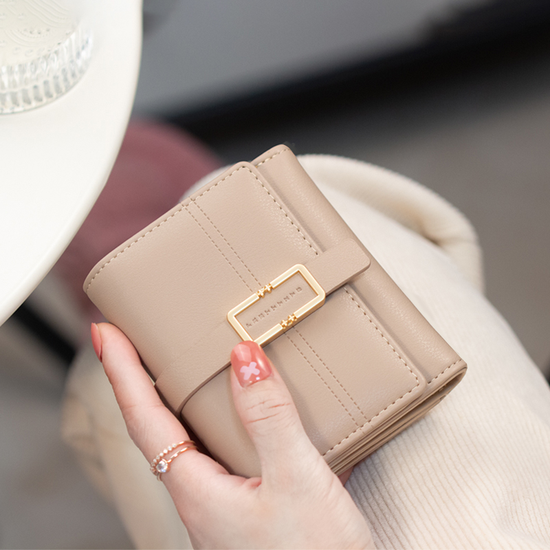 Niche Classic Versatile Fashion Short Wallet for Women with Multiple Card Slots, Large Capacity, Foldable, Buckle Closure, Thin Long Clutch Bag