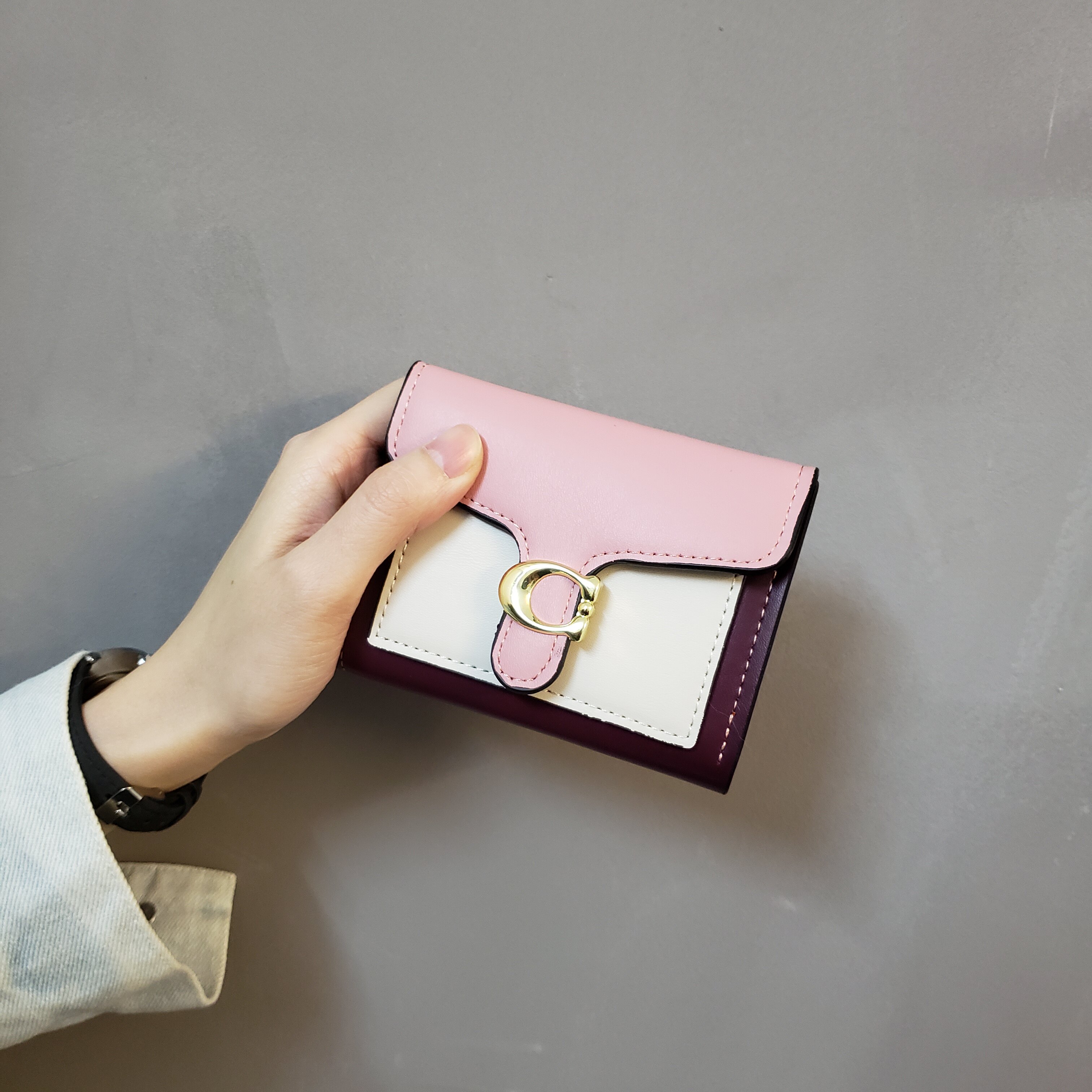 Solid Color Short Wallet for Women, Korean Style New Foldable Large-Capacity Student Wallet, Niche Design Patchwork Small Wallet Trendy
