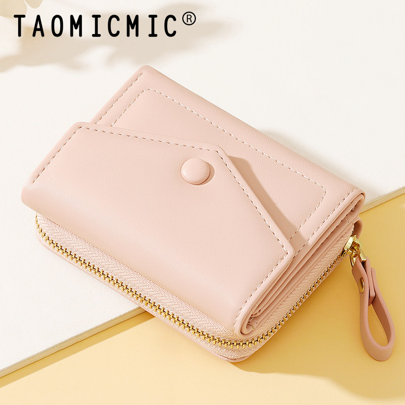 Mini Compact New Women's Wallet Short Style with Buckle, Multiple Card Slots, Zipper Coin Purse, Student Korean Style Versatile Soft