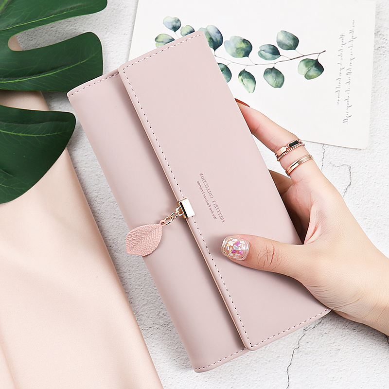 Women's Long Wallet 2025 New Trendy Internet Celebrity Leaf Design Niche Design Women's Folding Wallet Card Holder Clutch Bag for Women