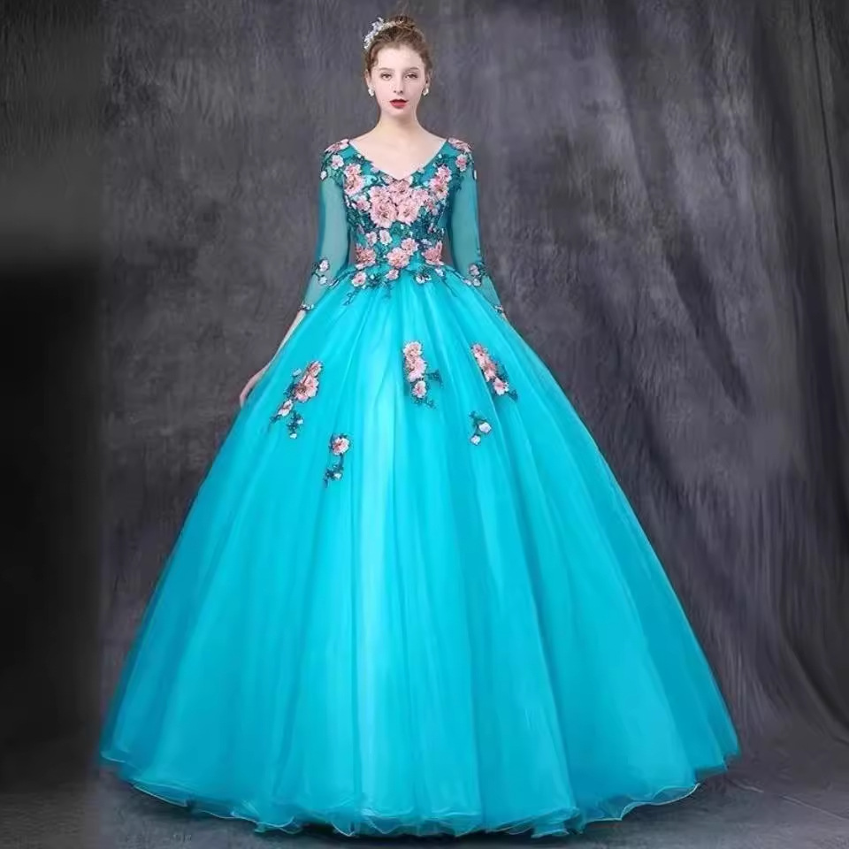 Colorful Wedding Dress Evening Dress Summer Long-Sleeved Student Art Exam Performance Vocal Folk Song Solo Performance Dress Tutu Skirt for Women