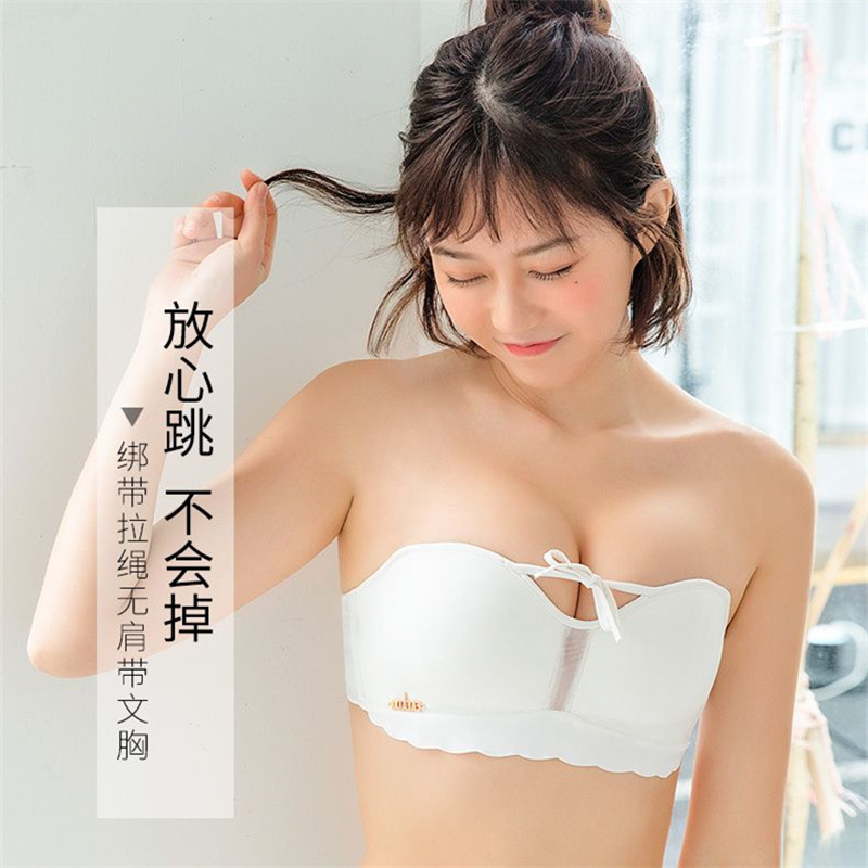 Japanese style thickened wedding tube top strapless underwear women's non-slip push up wireless summer invisible seamless bra