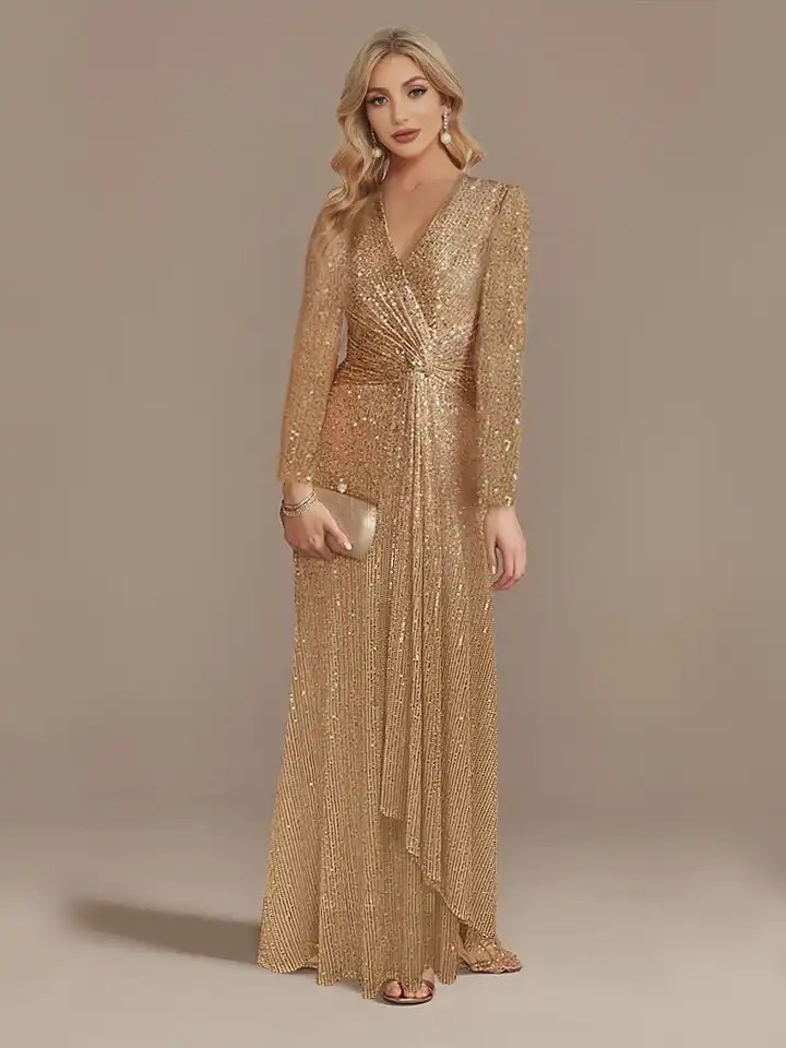 V-Neck Evening Dress Wedding Party Sequins Prom Dresses